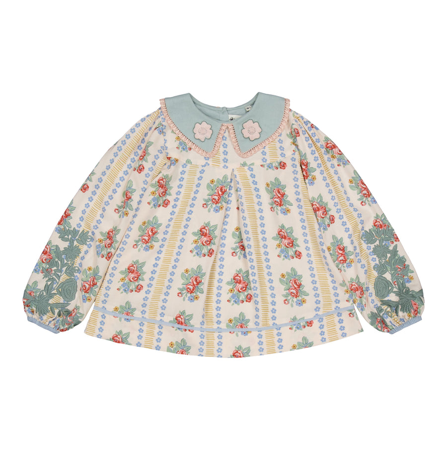 A blouse in 100% ECOVERO® Viscose with a magnificent hand embroidered and lace trimmed collar and hand embroidery on the sleeves.