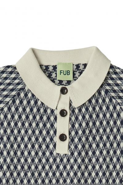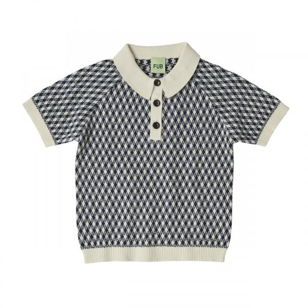 Made from organic cotton this knitted polo is designed with short sleeves, a small shirt collar, front closure with corozo buttons, and ribbed hems. This polo has a regular fit, and the body and sleeves are knitted in a graphic two-toned jacquard pattern. The buttons are made from corozo nuts and are entirely biodegradable.