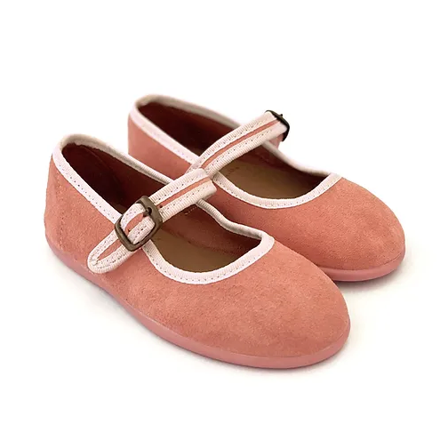 Ballerina shoe in suede with an anti-slip rubber outsole.