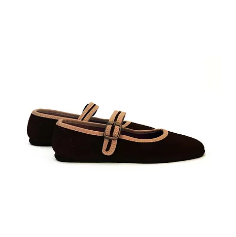 Ballerina shoe in suede with an anti-slip rubber outsole.
