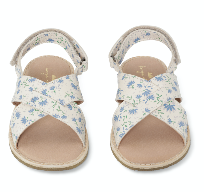 Double strap summer sandal made with adjustable velcro fastening heel. Designed with a soft cushioned insole. Made in printed leather.
