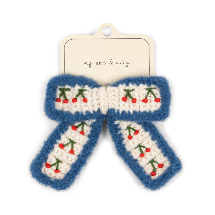 Crochet bow clip made from 100% acrylic and 100% steel
