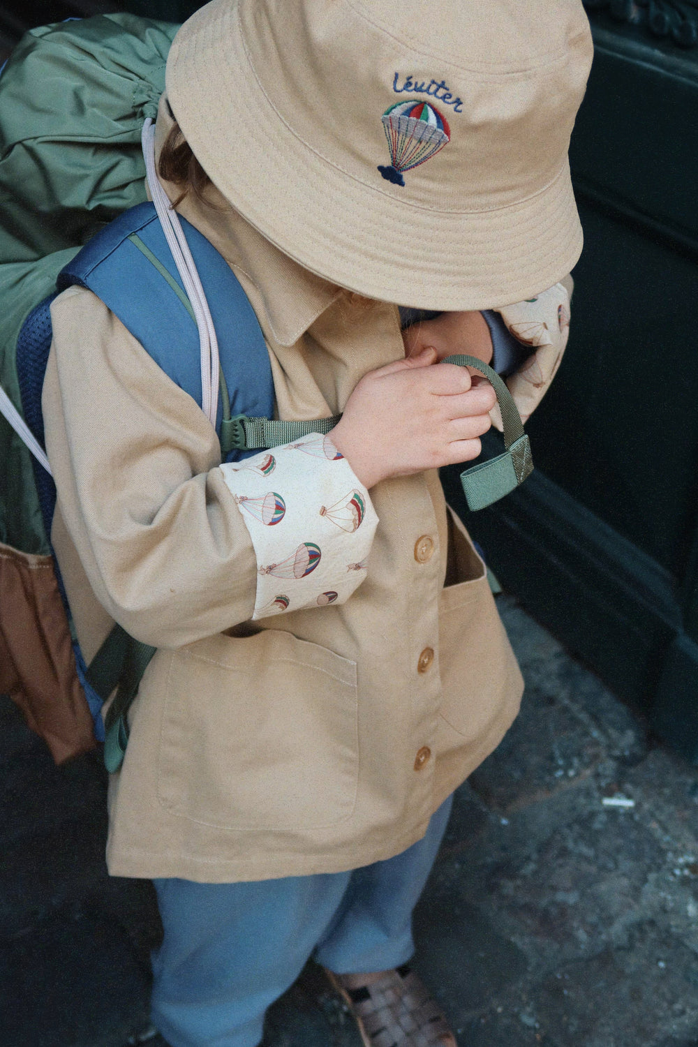 Bucket hat made in 100 percent organic cotton adorned with embroideries.