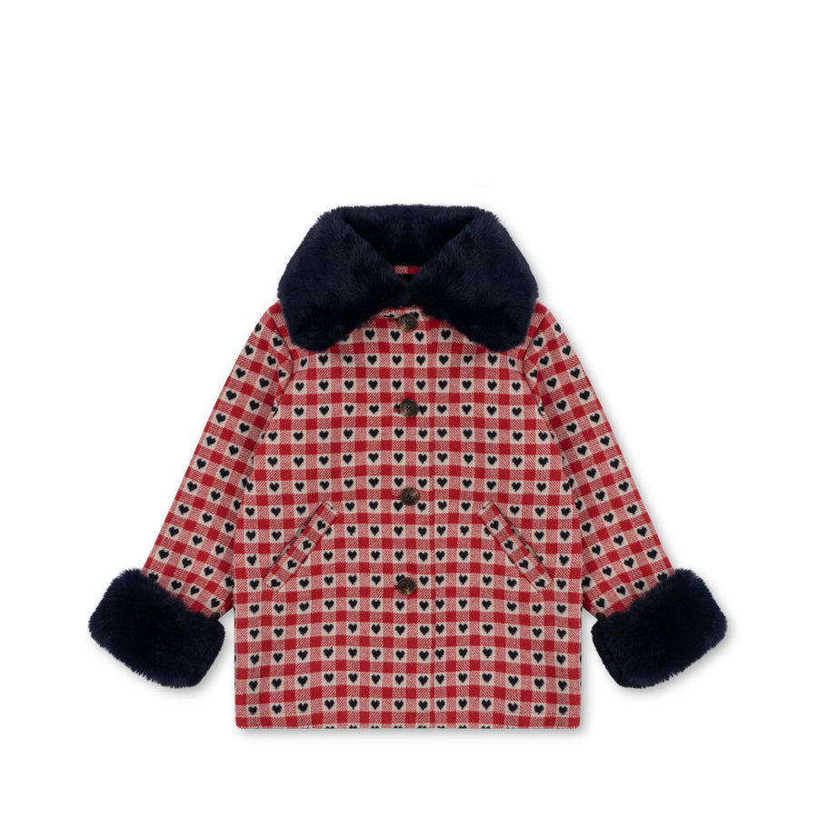 Made in a wool and polyester blend with a polyester lining. Fur made from 100% polyester