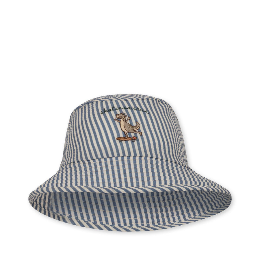 Bucket hat made in in 61 percent recycled polyester and 39 percent polyester.