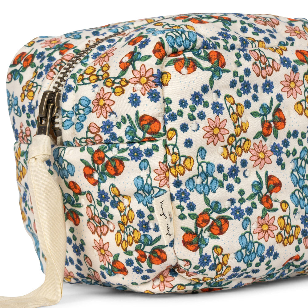 Large quilted toiletry bag made from 100% organic cotton. The bag has one big compartment, a small inside pocket, and is softly padded in order to keep your essentials safe. Closes with a zipper.