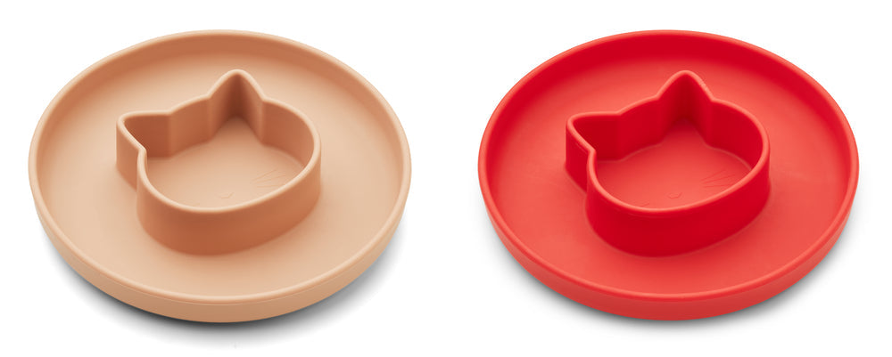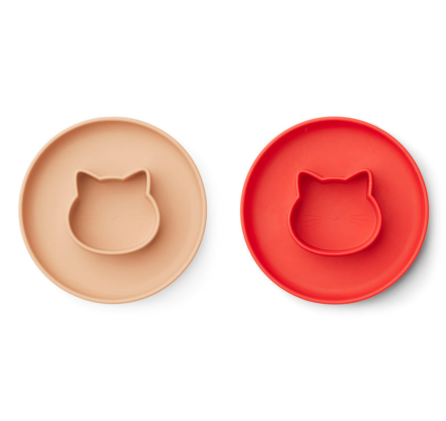 [Liewood] Gordon Plate 2pack -Cat Apple Red / Tuscany Rose Mix