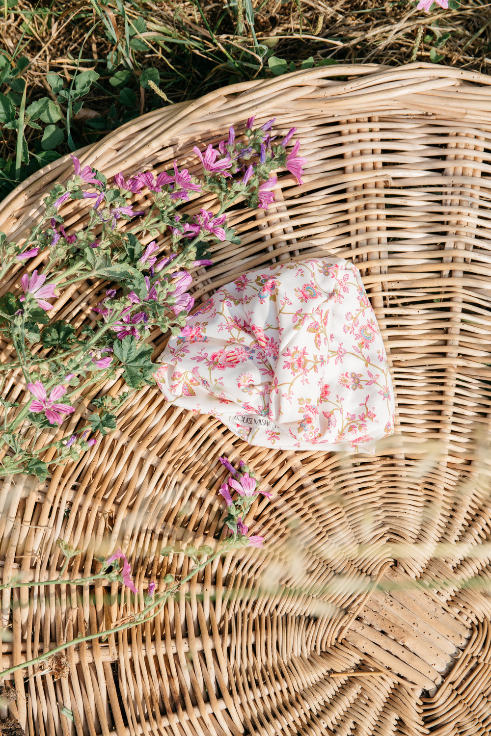 Here's the bohemian version of the traditional bathing cap! With its turban style, and available in this season's prints that are all more poetic than the other, it is now a genuine fashion accessory that you will never want to take off during your vacations.