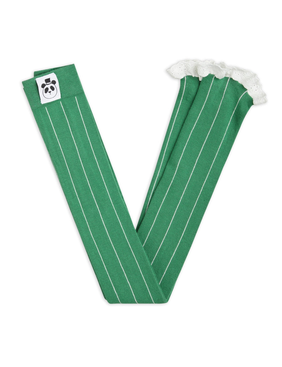 [Mini Rodini] Pinstripe Lace Edge Leggings - Green