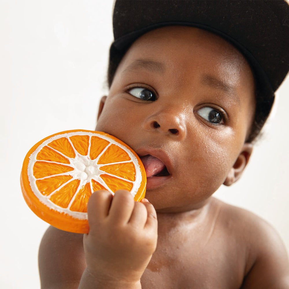 Clementino the Orange is a fruit-shaped baby teether that will stimulate babies’ senses while soothing little gums. Introduce kids into a healthy lifestyle from a young age! Did you know that eating oranges is highly nutritional and beneficial for health? It will become babies and kids’ favorite teether, bath toy and sensory play toy.
