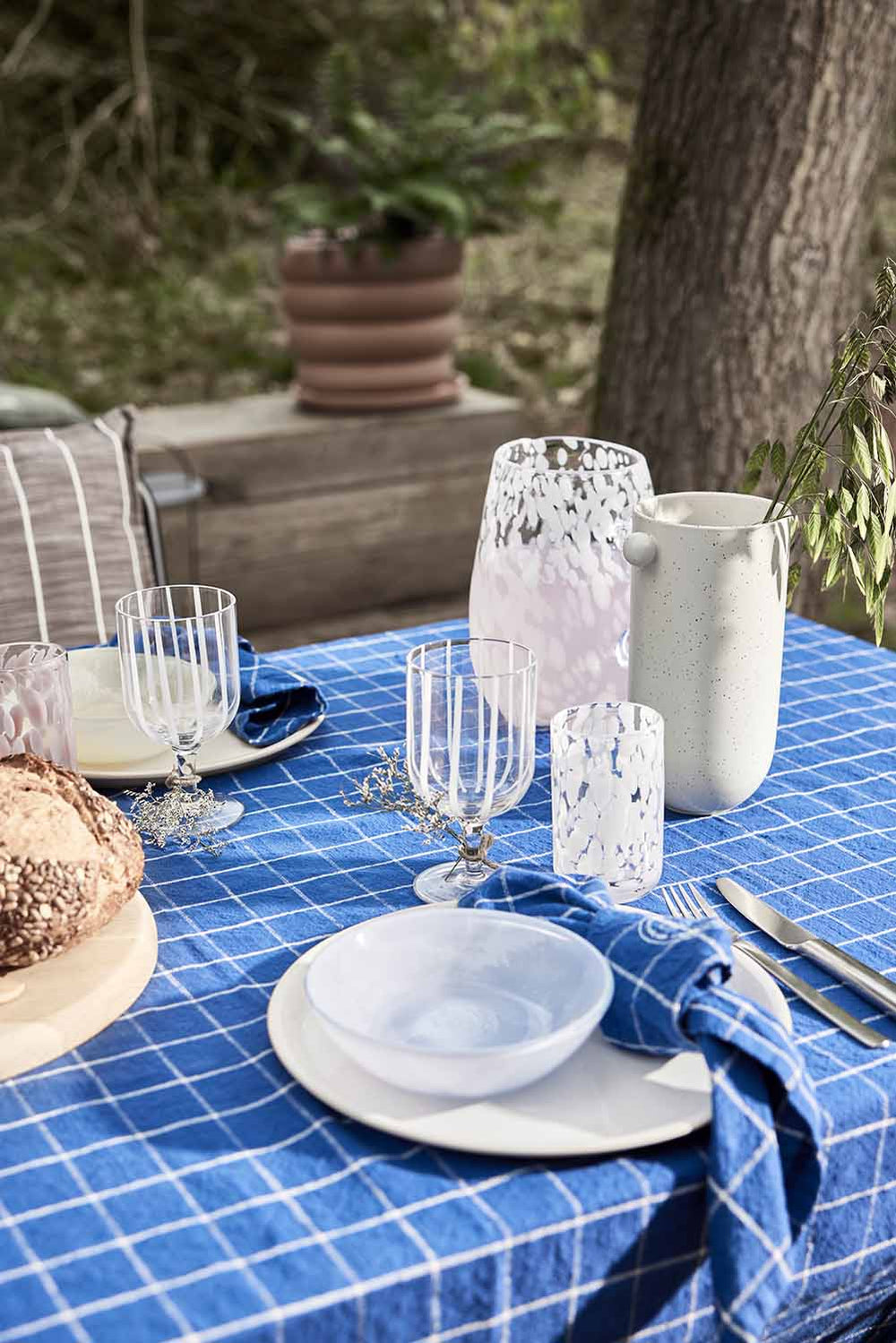 The tablecloth is available in two different sizes and can be used with our cloth napkins, which are made in the same checkered print.
