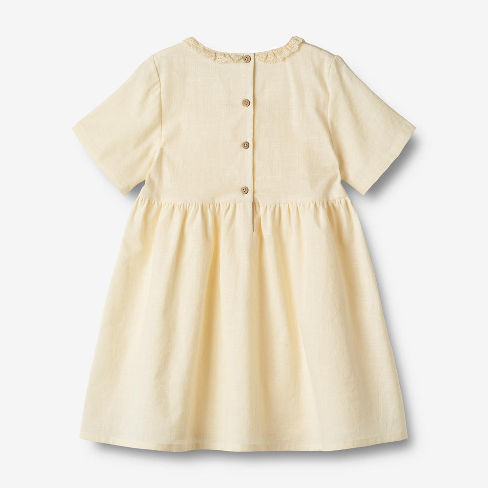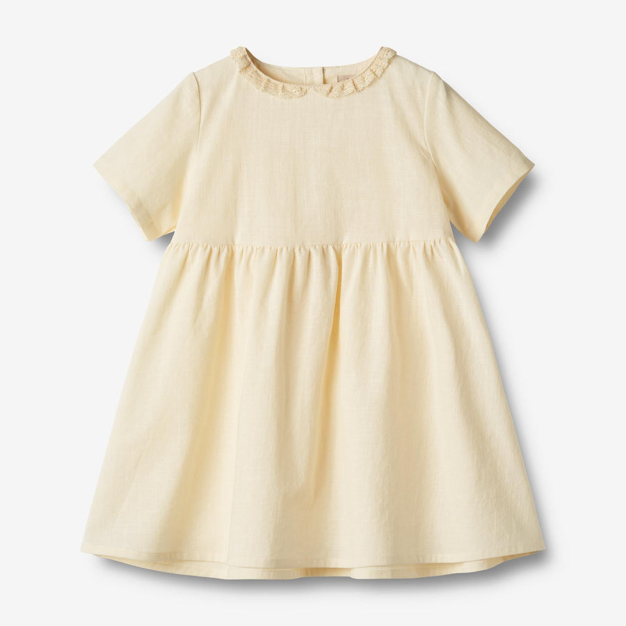 Sweet short-sleeved dress in soft organic cotton chambray for children.