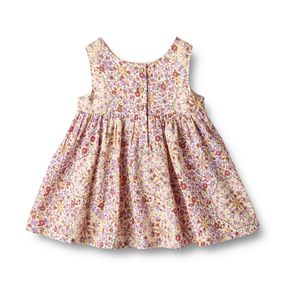 Sleeveless dress with print in soft woven organic cotton for babies.