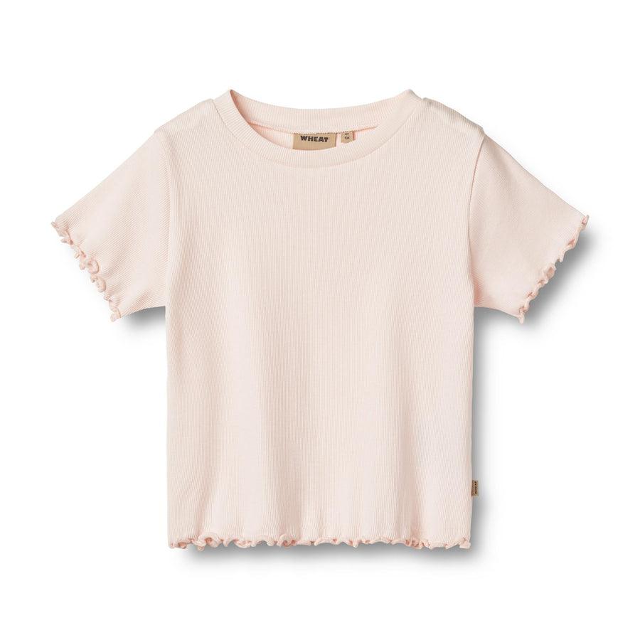 Short-sleeved rib T-shirt in a soft mix of organic cotton and Lenzing modal for children.