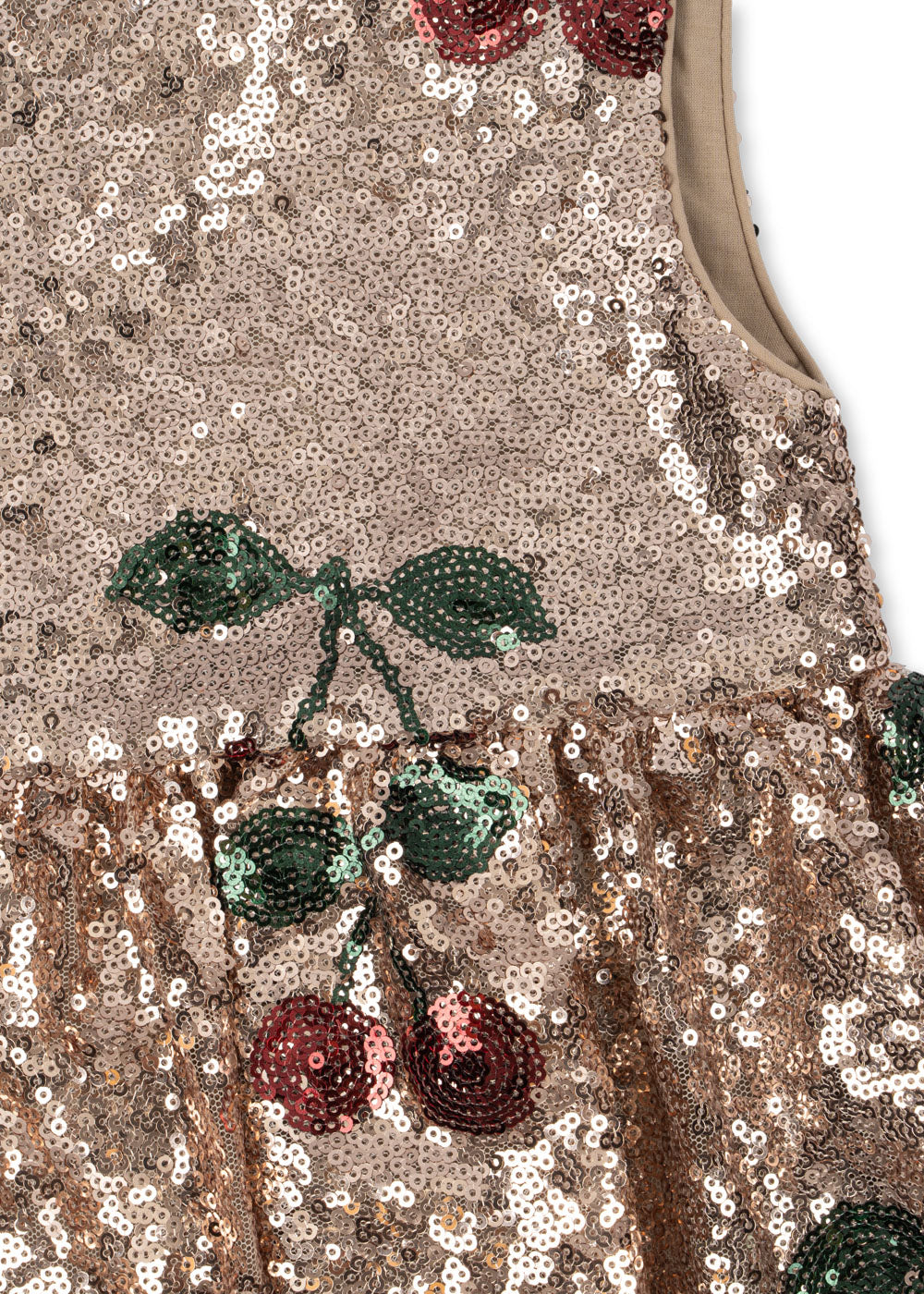 A true showstopper: The Starla dress is dressed in sparkly sequins, and features an accentuated waistline, round neck, and flared skirt.