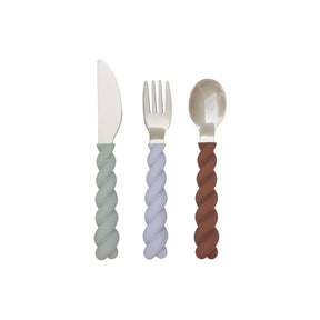 The sweet Mellow cutlery is made of stainless steel with a silicone handle. The Mellow cutlery set consists of a fork, spoon and knife, all of which have a handle with the recognizable Mellow twist, so that the little hand gets a good grip on the cutlery. Ideal as the very first piece of cutlery, and wonderfully easy to clean, since it can go in the dishwasher.
