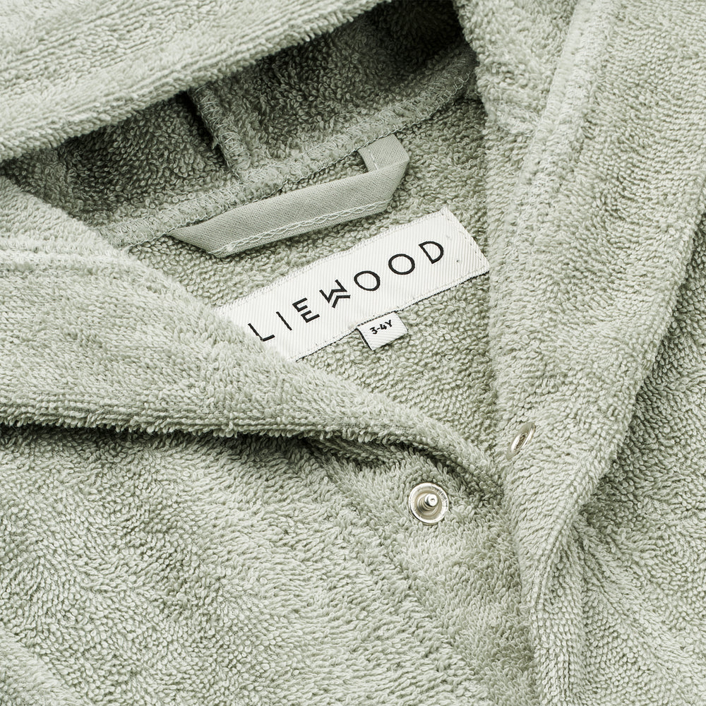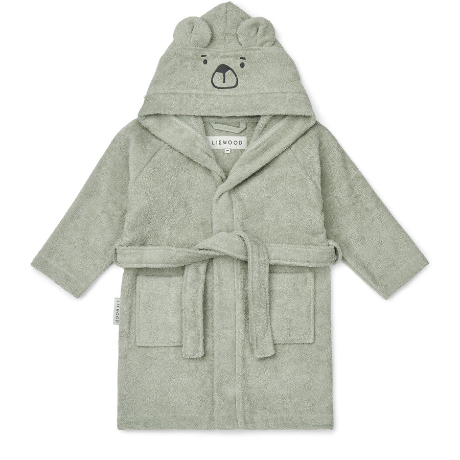 Snugly bathrobe with cute animal details and ears on the hood in soft organic cotton. The practical press buttons down the front will help the robe stay closed, and the dense terry quality will keep little ones dry and cosy after bathtime.