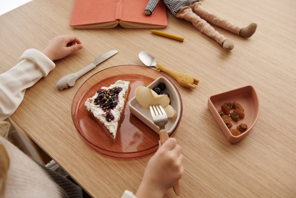 Bring a touch of fun to mealtimes with the Tove Cutlery Set. Made from stainless steel and with 3D silicone handles for extra grip, this durable cutlery is perfect for little hands to hold and a playful tool for encouragement.