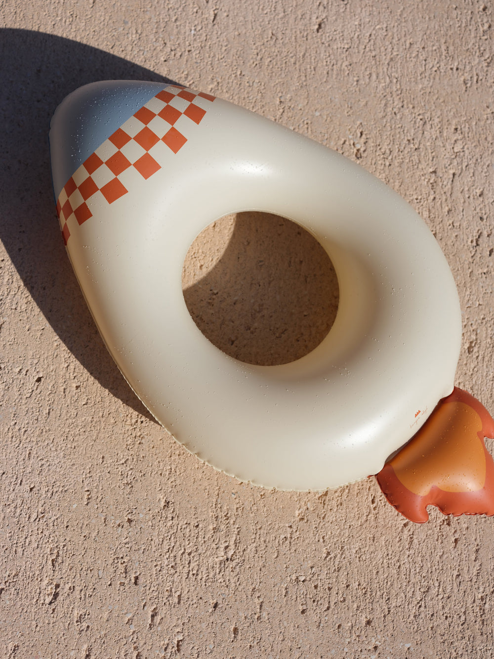 Aufblasbarer Schwimmring in Raketenform aus strapazierfähigem PVC.