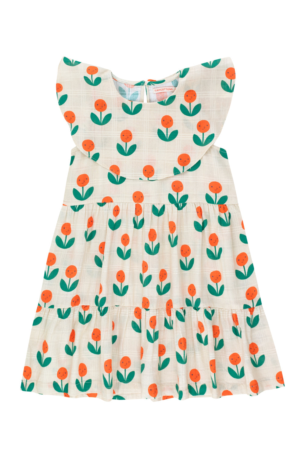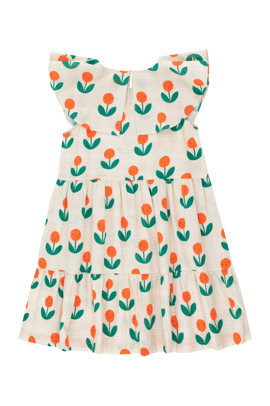 Lernen Sie die süßeste Blütenknospe aus den Paraíso Tiny-Gärten kennen. Unser Kleid mit Pfingstrosen-Print ist aus weichem Baumwollstoff mit Struktur gefertigt. Es hat einen runden Ausschnitt mit Öffnung auf der Rückseite, einen breiten runden Kragen und einen elastischen Bund.