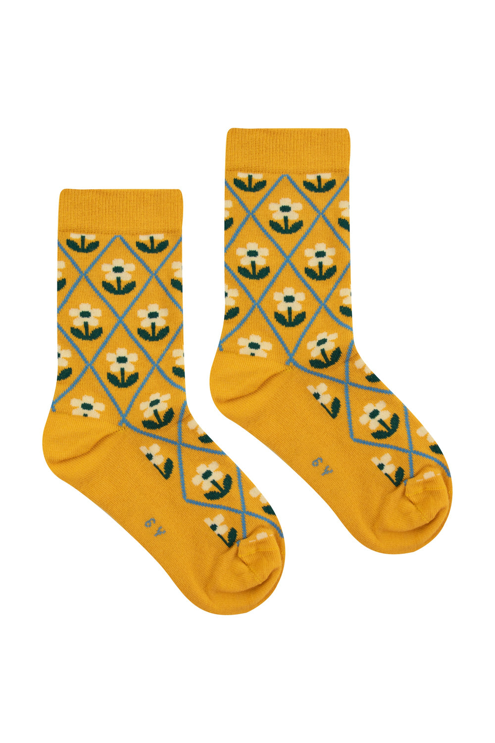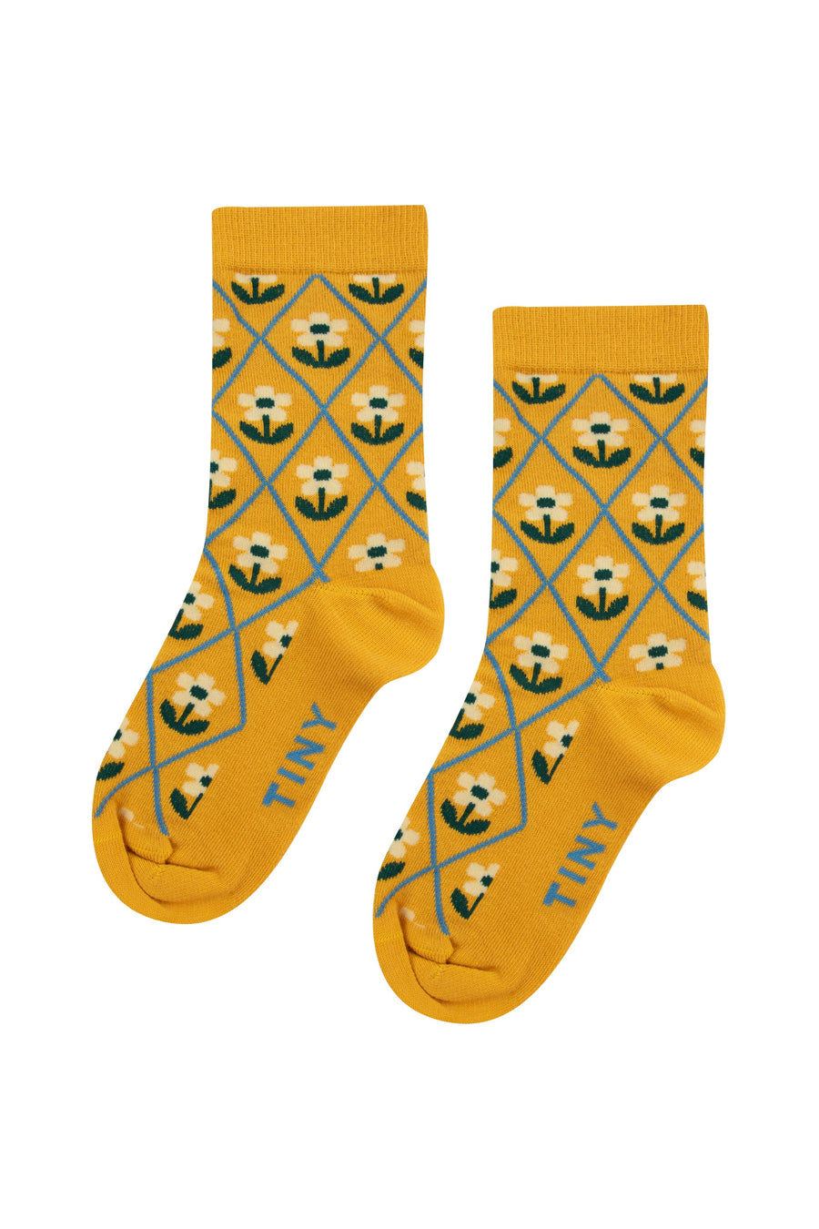 Die AW23-Kollektion von TINY bietet Ihnen in dieser Saison das perfekte Accessoire: die Flowers Medium Socks. Diese lustigen senffarbenen Socken mit Blumenmuster sind aus einer weichen Baumwollmischung gefertigt und eignen sich perfekt für die Abenteuer Ihres Kleinen in Chamonix und darüber hinaus!