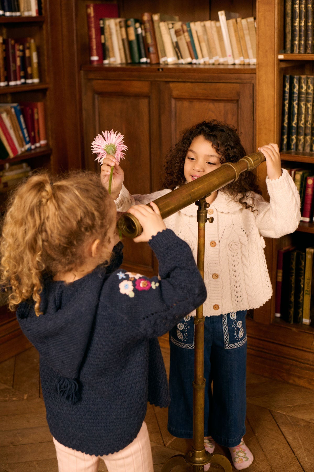 - Hand-crocheted scalloped edges on sleeves and hem.