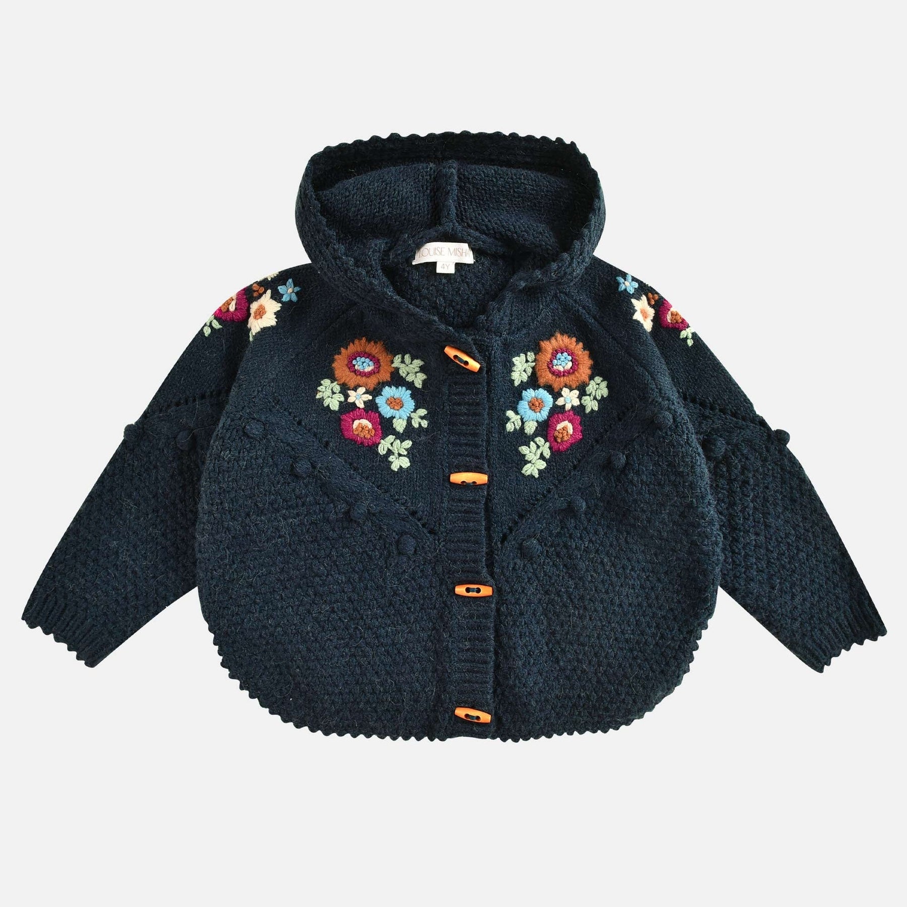 - Hood with hand-crocheted scalloped edges and handmade pompom.