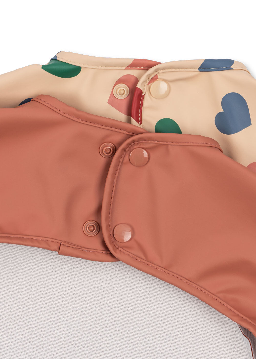The long sleeve dinner bib comes in a 2 pack in a variety of prints and colors