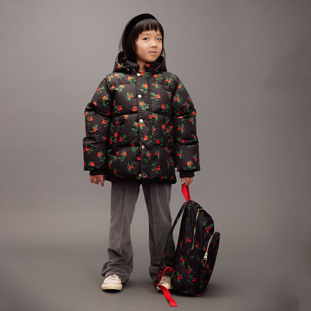 [Mini Rodini]Lingonberries aop hooded puffer - Black