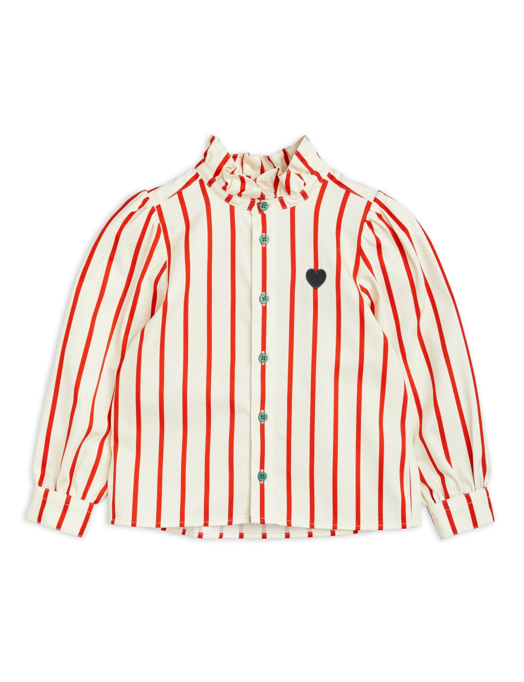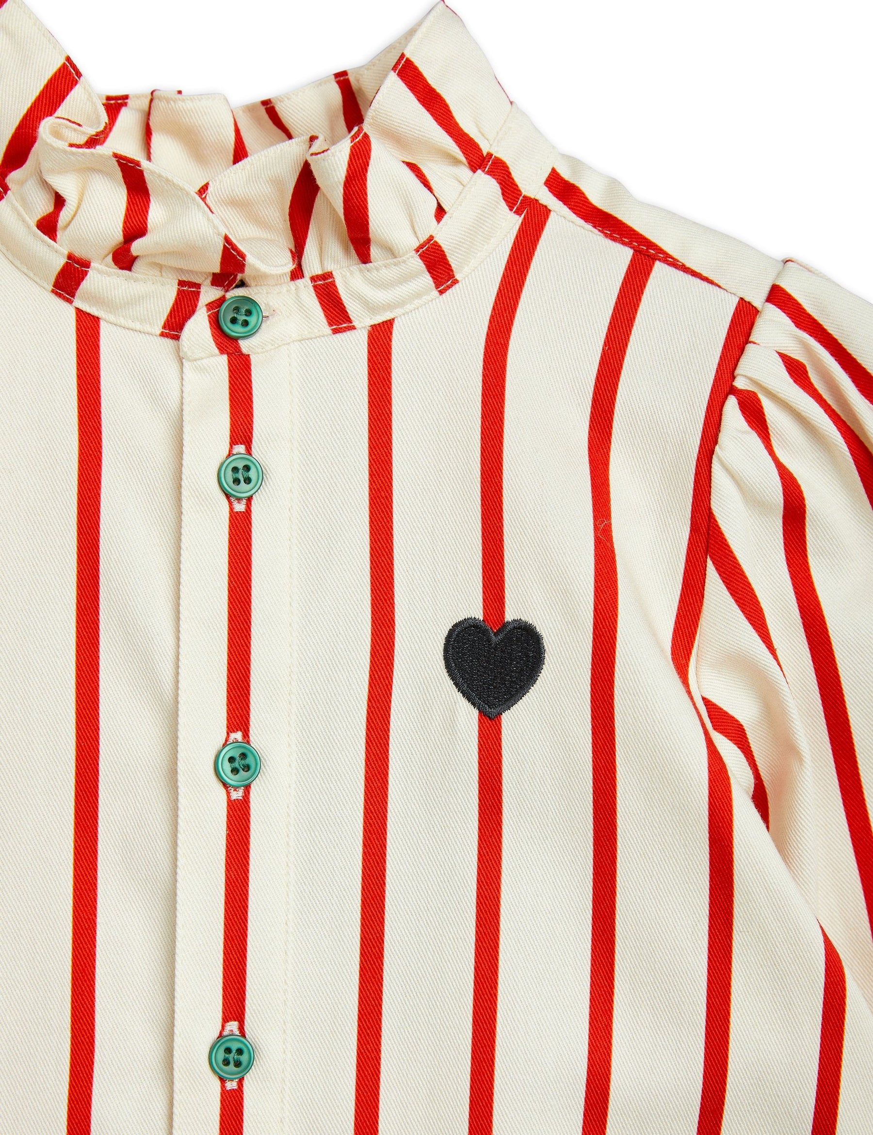 Gesticktes Herz auf der Brust • Hoher Rüschenkragen • Leicht gepuffte Ärmel • Knöpfe auf der Vorderseite • 100 % Bio-Baumwolle • GOTS-zertifiziert • Hergestellt in der Türkei • SKU 2372010500