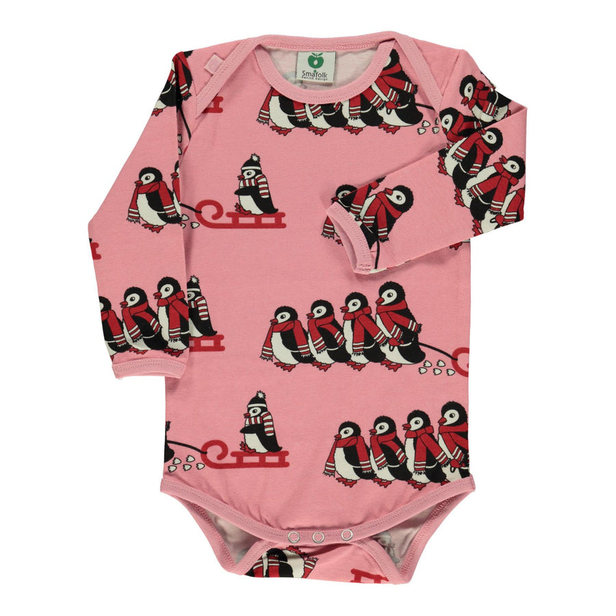 [Smafolk] Long Sleeved Top Baby Body With Penguins - Pink