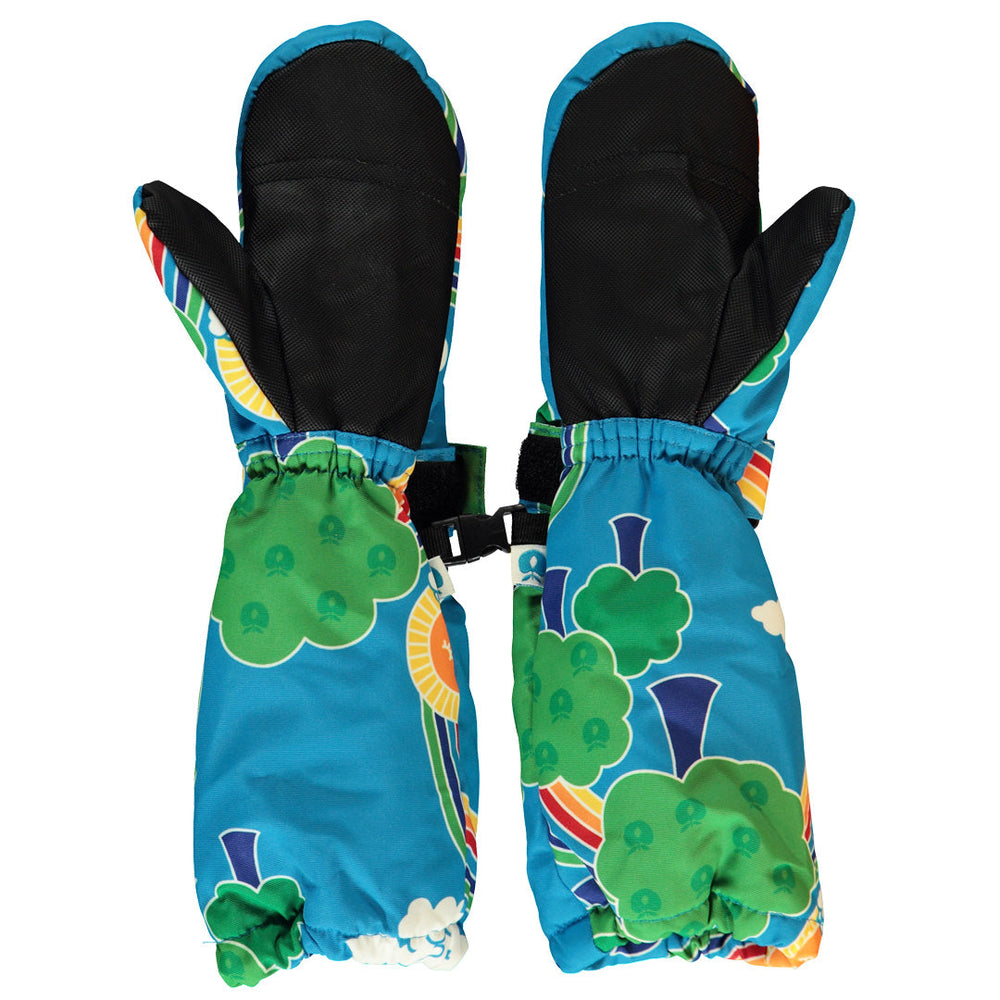 The mittens have DuPont™ Sorona® insulation, which keeps the child warm and dry, and are treated with BIONIC-FINISH® ECO, which is a biodegradable surface treatment. The treatment prevents moisture from penetrating the fabric, while excess moisture from the body is automatically transported to the surface of the material to evaporate. The treatment is free of fluoride substances. The mittens are snow and water repellent, dirt repellent and windproof.