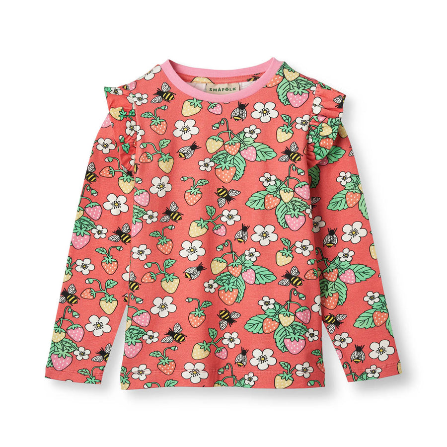 [Smafolk] Long Sleeve Shirt With Strawberry - Pink Punch