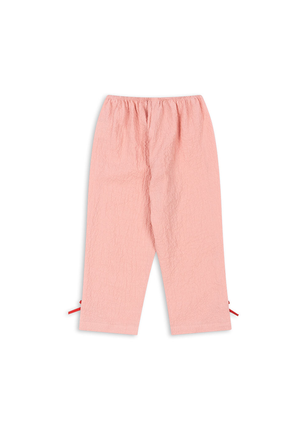 Soft pants in a textured seersucker fabric. Designed with a straight fit and a comfortable elastic waistband. Made from 98% organic cotton and 2% elastane. GOTS, Organic, certified by CU1094701.