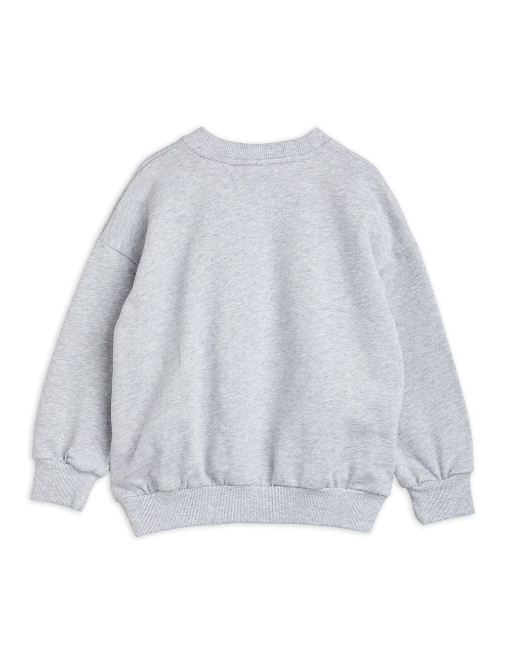 Gray mottled sweatshirt with a large Ritzratz print on the front, made from 100% GOTS-certified organic cotton. The sweatshirt has slightly dropped shoulders for a relaxed fit with ribbed neck, cuffs and bottom hem.