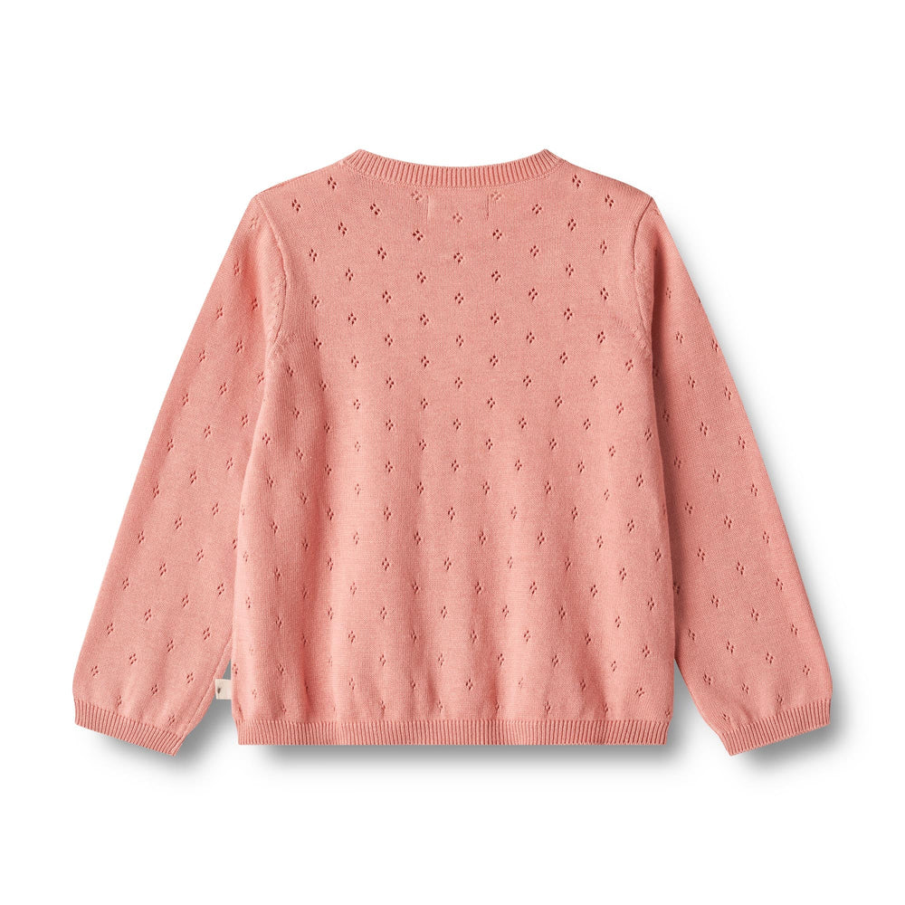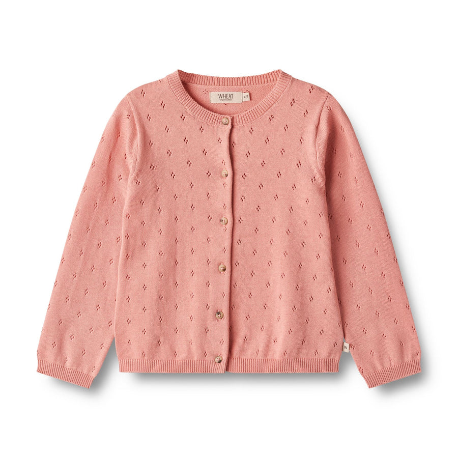 Long-sleeved knit cardigan in soft organic cotton for children.